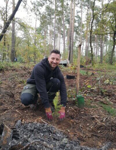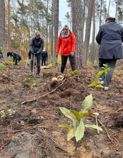 Am 27. Oktober 2023 fand unsere erste gemeinsame Pflanzaktion in einem ehemaligen Kiefernwald bei Krangen statt, wo wir gemeinsam mit Mitarbeitern des Resorts verschiedene Baumarten wie Ahorn, Eiche, Esskastanie und Douglasie gepflanzt haben. Das Besondere an dieser Aktion war die Teilnahme von Hans-Dieter Bergmann, dem Chef des Resorts, der persönlich Hand anlegte und damit seine Unterstützung für unser Projekt unterstrich.